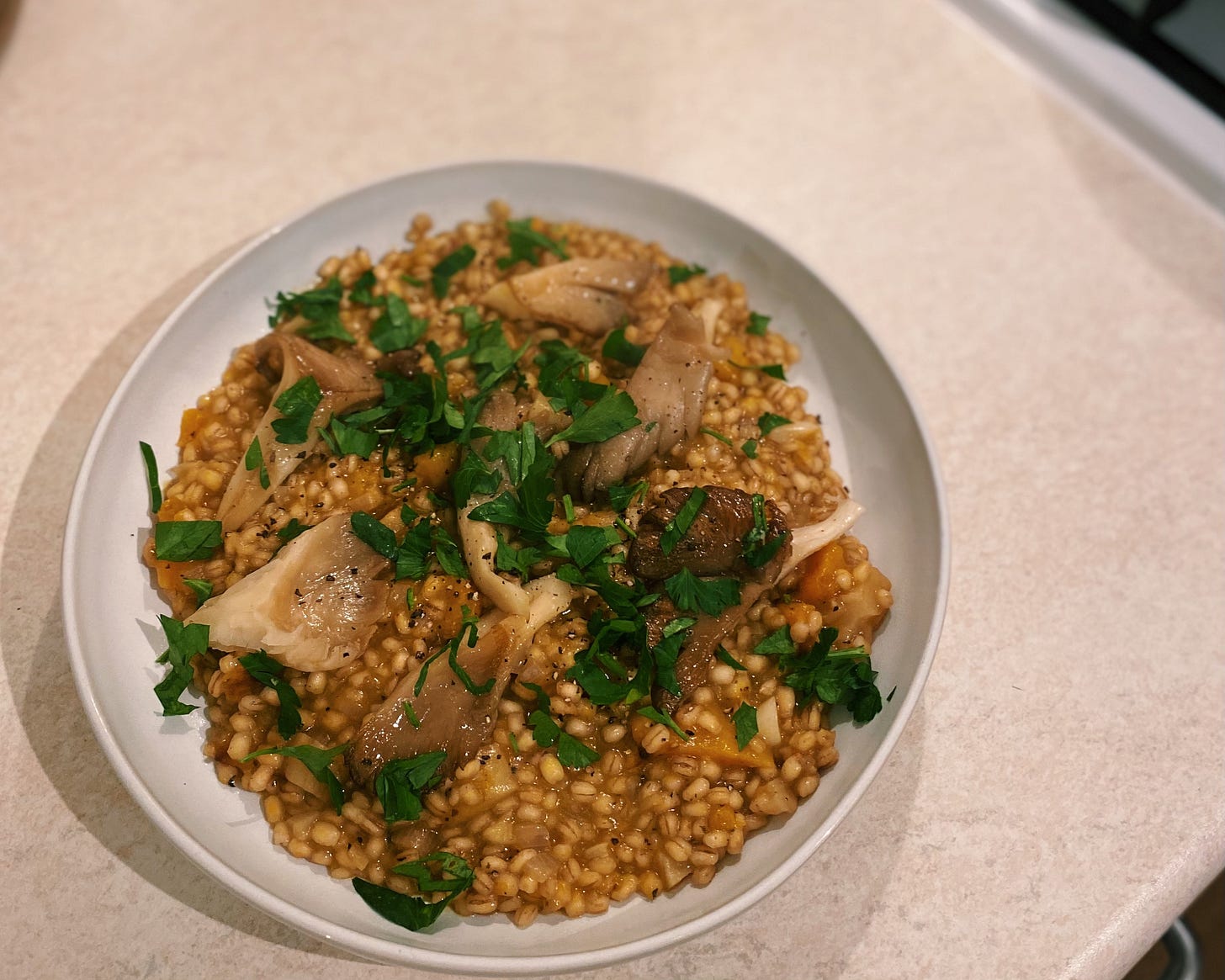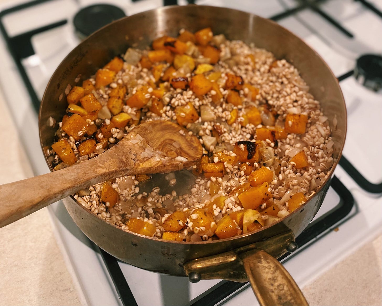 Pearl Barley Risotto With Oyster Mushrooms, Sunchokes + Butternut Squash