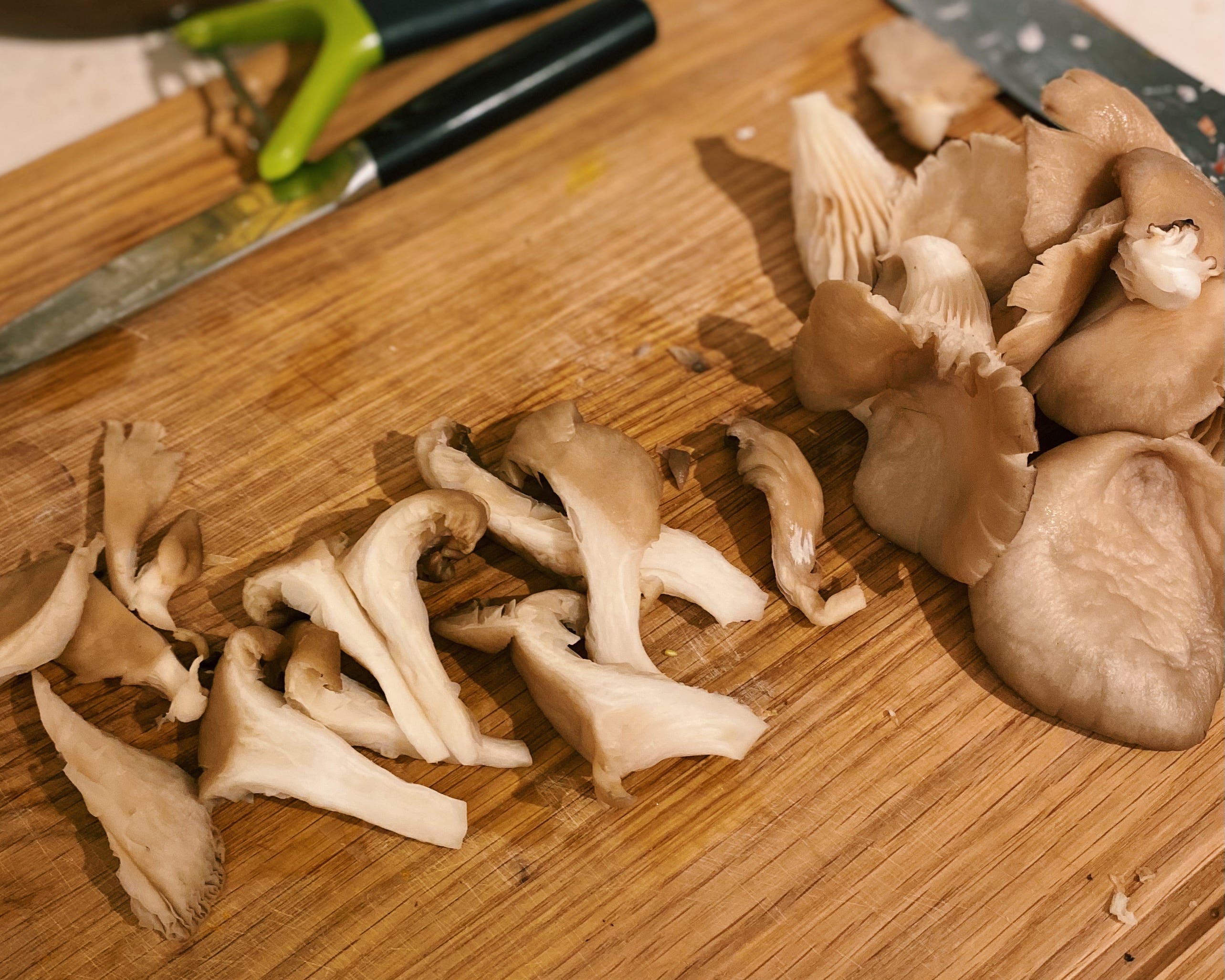 8 oyster mushrooms, sliced (Oyster mushrooms are one of the most nutrient dense mushrooms you can get at a supermarket. They are super high in vitamin D and beta-glucans which help to boost your immune system)
