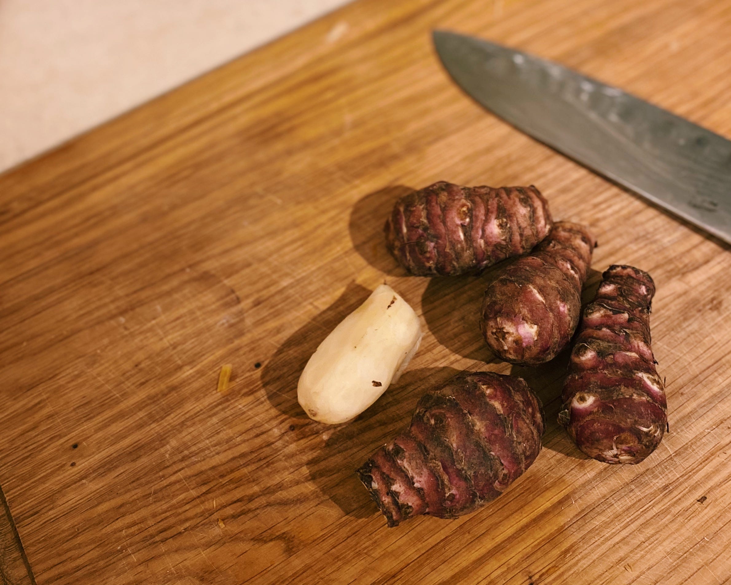 5-6 sunchokes aka jerusalem artichokes, peeled and cut into smallish cubes (Sunchokes are root vegetables currently in season and come from the sunflower family, hence the cute name. I love them because they are naturally really high in prebiotic fiber which is great for your gut as it feeds the good bacteria in your tummy, in addition to being a natural source of magnesium which is good for relaxing your body and mind)